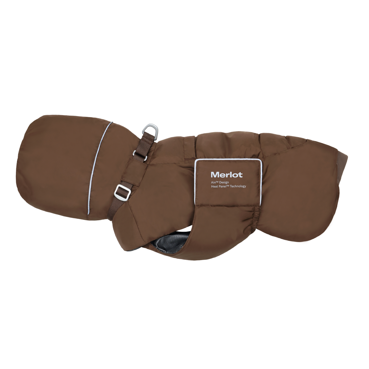 The MUTTS Ain™ Puffer is a technical, all-in-one dog puffer coat designed to deliver lightweight warmth, waterproof protection and unrestricted movement. Built around Merlot’s patented Ain™ integrated design, it features advanced MicroLoft™ insulation that traps heat through ultra-fine fibres and internal air layers, creating an insulated dog coat that stays warm without bulk. The anatomical Heat Panel™ system responds to your dog’s movement to help regulate body temperature in cold conditions.