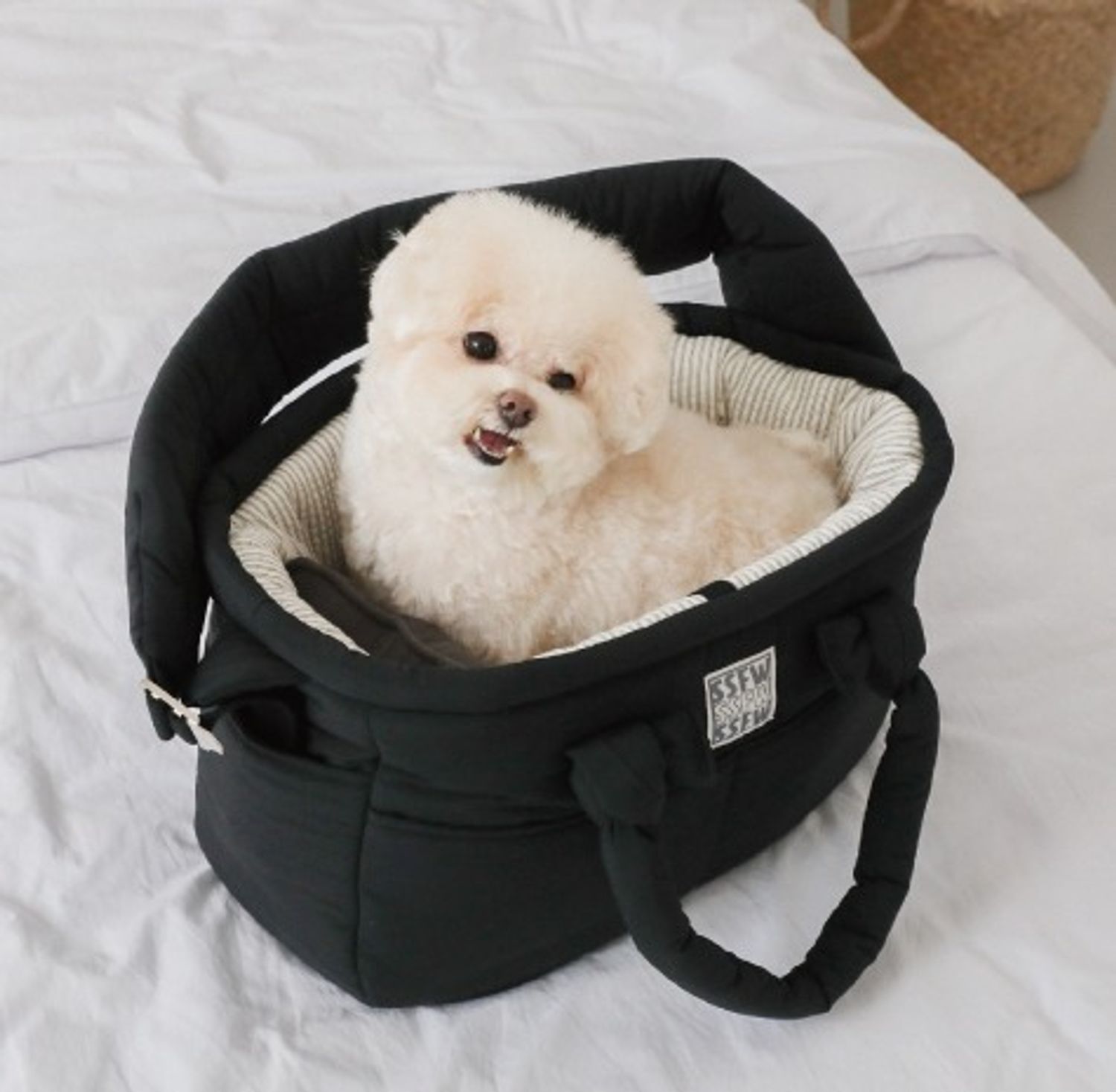 Three-in-one tote bag, sling bag, and portable bed made from 100% waterproof nylon with a microfibre cotton interior.